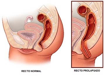También conocido como procidencia se define como una protuberancia del recto más allá del ano. El prolapso rectal completo o de espesor total es la protrusión de toda la pared rectal a través del canal anal; si la pared rectal se ha prolapsado pero no sobresale por el ano, se denomina prolapso rectal oculto (interno) o invaginación rectal. El prolapso rectal de espesor total debe distinguirse del prolapso de mucosa rectal, este último se refiere a la protuberancia parcial de la mucosa rectal.